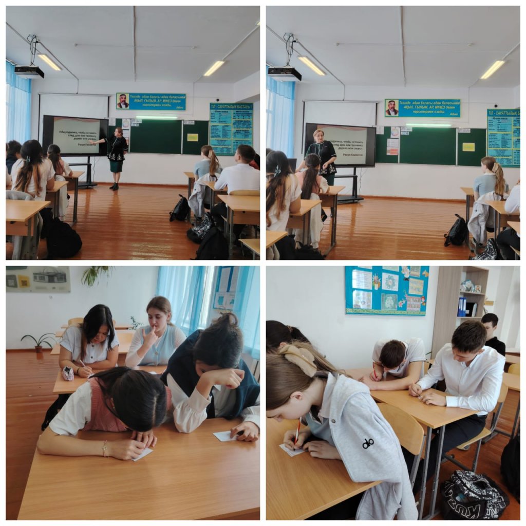 Жоспарды іске асыру аясында педагог психолог тұлғаның кәсіби түрін анықтау үшін сауалнама тестін өткізді. 9 сынып оқушылары сұрақтарға жауап беріп, осы тест бойынша қандай бағыт бар екенін білді. Тест барысында психолог белгілі бір кәсіби қызметпен байланысты...