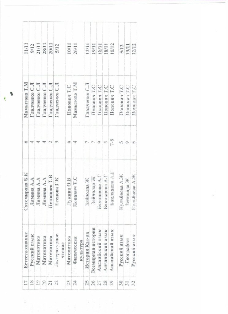 Әкімшілік тарапынан сабақтарға қатысу кестесі (2-тоқсан)