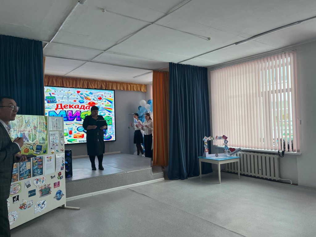 Декаданың ашылуы мұғалімнің кіріспе сөзімен басталды. Онда қазіргі заманда математиканың, физиканың және информатиканың маңыздылығы, олардың ғылымды, технологияны және инновацияны дамытудағы рөлі атап өтілді. Шараның жарқын сәті оқушылардың өнері болды: оқушылар математикаға, физикаға және информатикаға арналған тақырыптық өлеңдер оқып, онда формулалардың, табиғат заңдарының және сандар әлемінің сұлулығын көрсетті.
